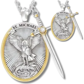 O Colar de São Miguel é uma joia religiosa dedicada ao Arcanjo São Miguel, conhecido como protetor e guerreiro nas tradições cristãs. É um símbolo de fé e proteção.
